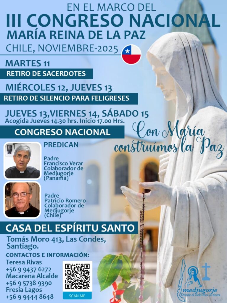 Lo que debe discernir quien ha peregrinado a Medjugorje, lo que debe implorar quien anhela responder al llamado de la Reina de la Paz, y la razón por la que, para todo católico, Medjugorje es determinante para la Iglesia y la humanidad en estos días, todo tendrá su respuesta en el Retiro y Congreso de la Reina de la Paz en Chile.